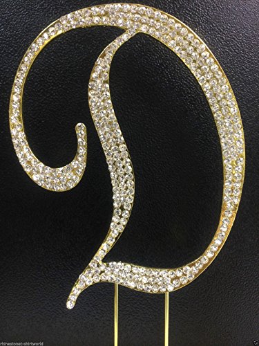 Crystal Rhinestone Covered Gold Monogram Wedding Cake Topper Letter D