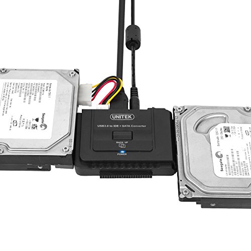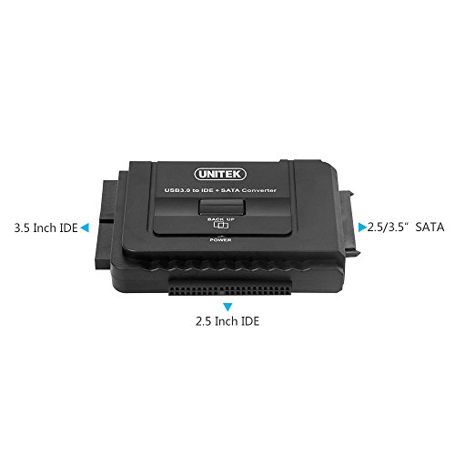 Unitek USB 3.0 to IDE and Sata Converter Hard Drive Adapter Universal 2.5/3.5/5.25 Drives Optical Drive, One Touch Backup Function and Restore Software, with 12v 2a Power Adapter, 4pin Power Cable