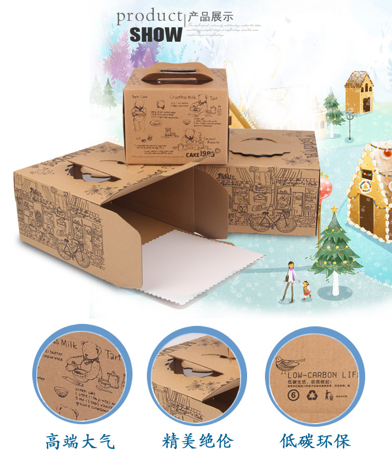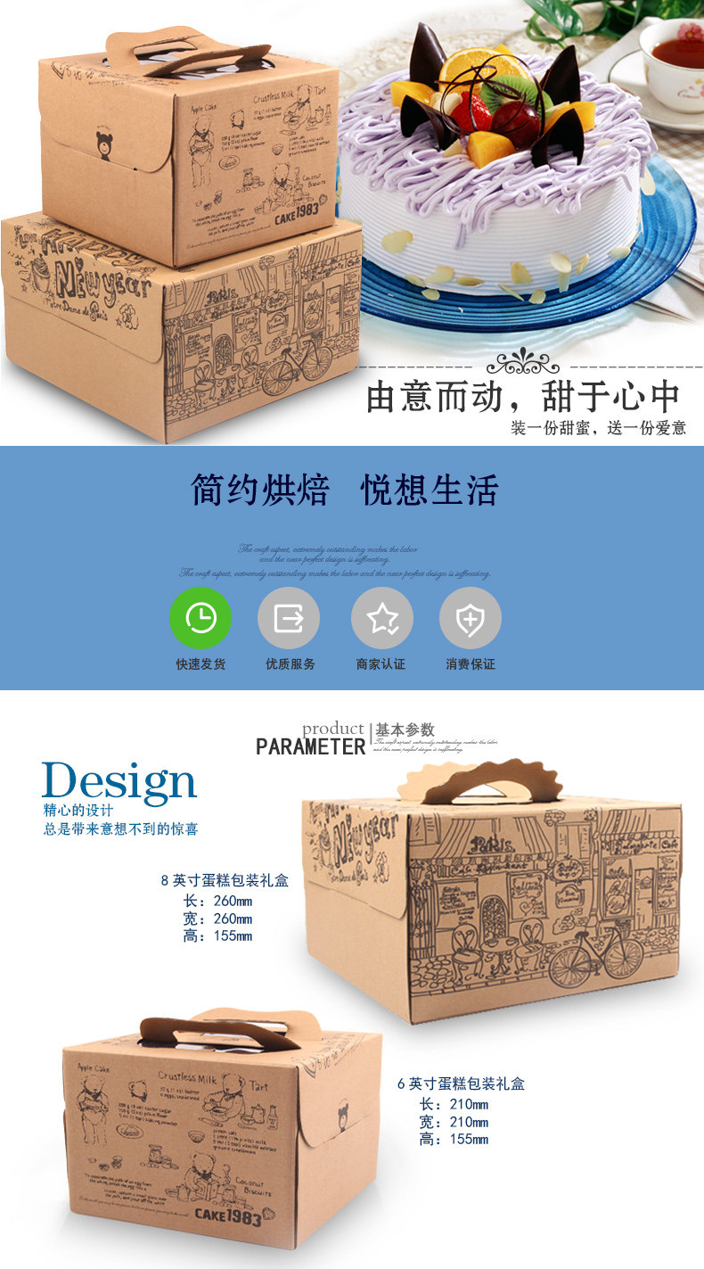 焙思奇 烘焙蛋糕包装盒 西点烘培6-8寸蛋糕礼盒 手提牛皮纸慕斯盒