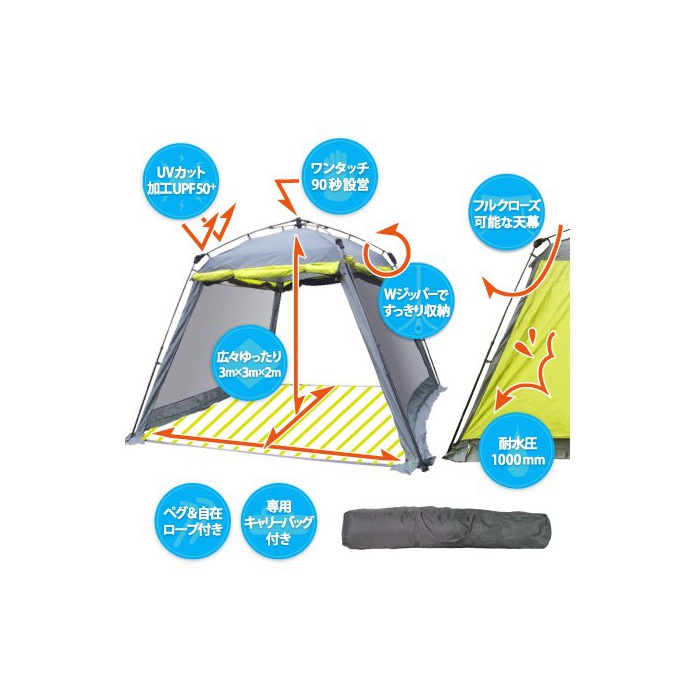 원본상품명: クイックキャンプ ワンタッチ スクリ?ンタ?プ 3m フルクロ?ズ アウトドア ワンタッチタ?プ タ?プテント QC-ST300 ALST-300