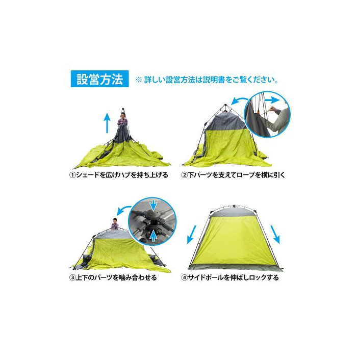 여유가 있는 3M사이즈면서,끈을 잡아끄는 것만(만큼)의 원터치로 전개 할 수 있는 대형 스크린 타프.바람이 없으면 혼자서 설치도 가능합니다.