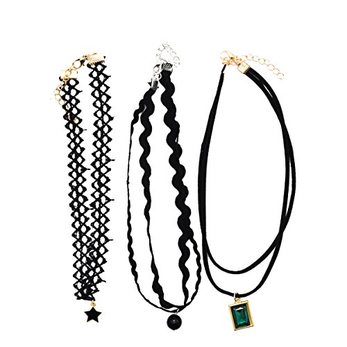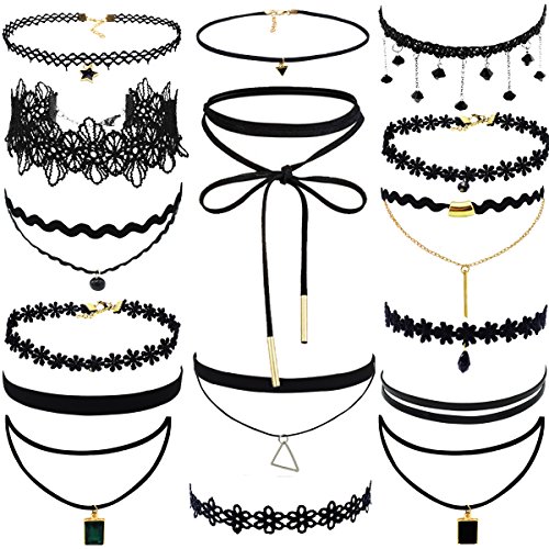 16 PCS Black Choker Necklace Leather Chain Velvet Choker Set in 14 Pattern – YSLF Stretch Velvet Classic Gothic Tattoo Necklace Lace Chocker for Women and Girls