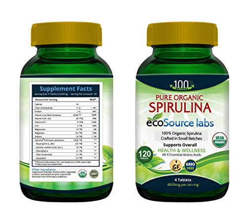 EcoSource Labs Organic Spirulina tablets contain more protein than fish, poultry, beef and soybeans. Harvested rich in beta-carotene with a full spectrum of carotenoids and all eight essential amino acids. High in iron, vitamins A, E, B, potassium and probiotic enzymes. Loaded with trace minerals and beneficial fatty acids like DHA and GLA. One can see why organic spirulina is considered the greatest of all superfoods. Crafted and harvested in small batch lots to guarantee freshness and potency.