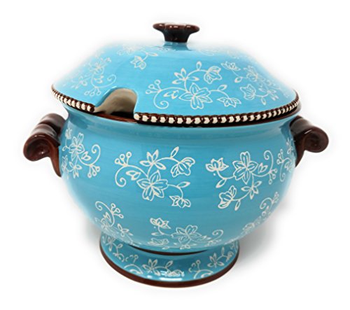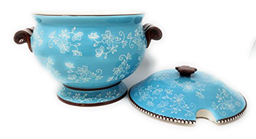 (Temptations)/Kitchen Dining/Tableware/DIRECT FROM USA/Temp-tations 3qt Soup Tureen with Lid, Stoneware (Floral Lace Light Blue)