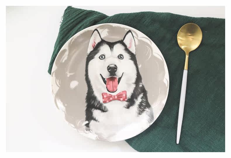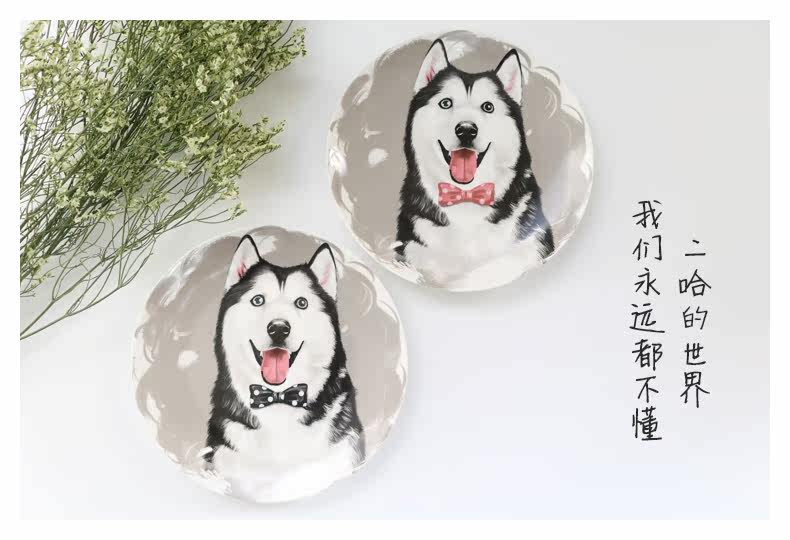 卡通狗狗西餐陶瓷盘创意哈士奇牛排盘二哈水果拼盘子学生吃饭餐具