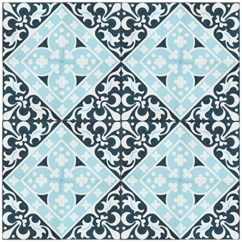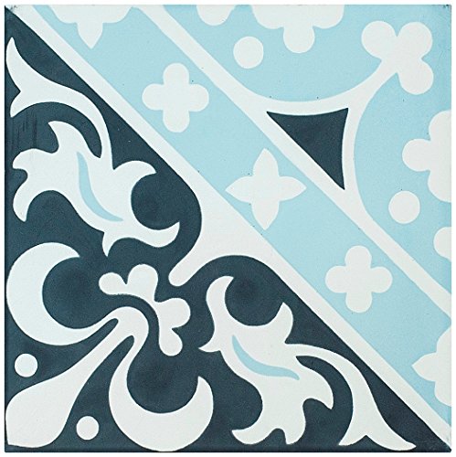 Rustico Tile and Stone RTS20 Victorian Cement Tile Pack of 13, 8" x 8, Black/White/Blue