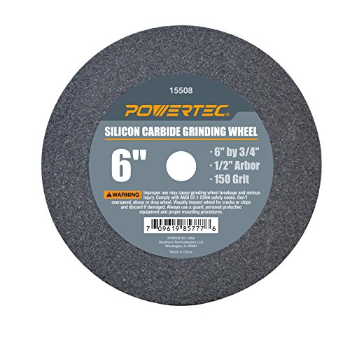 POWERTEC 15508 1/2" Arbor 150-Grit Silicon Carbide Grinding Wheel, 6" x 3/4"