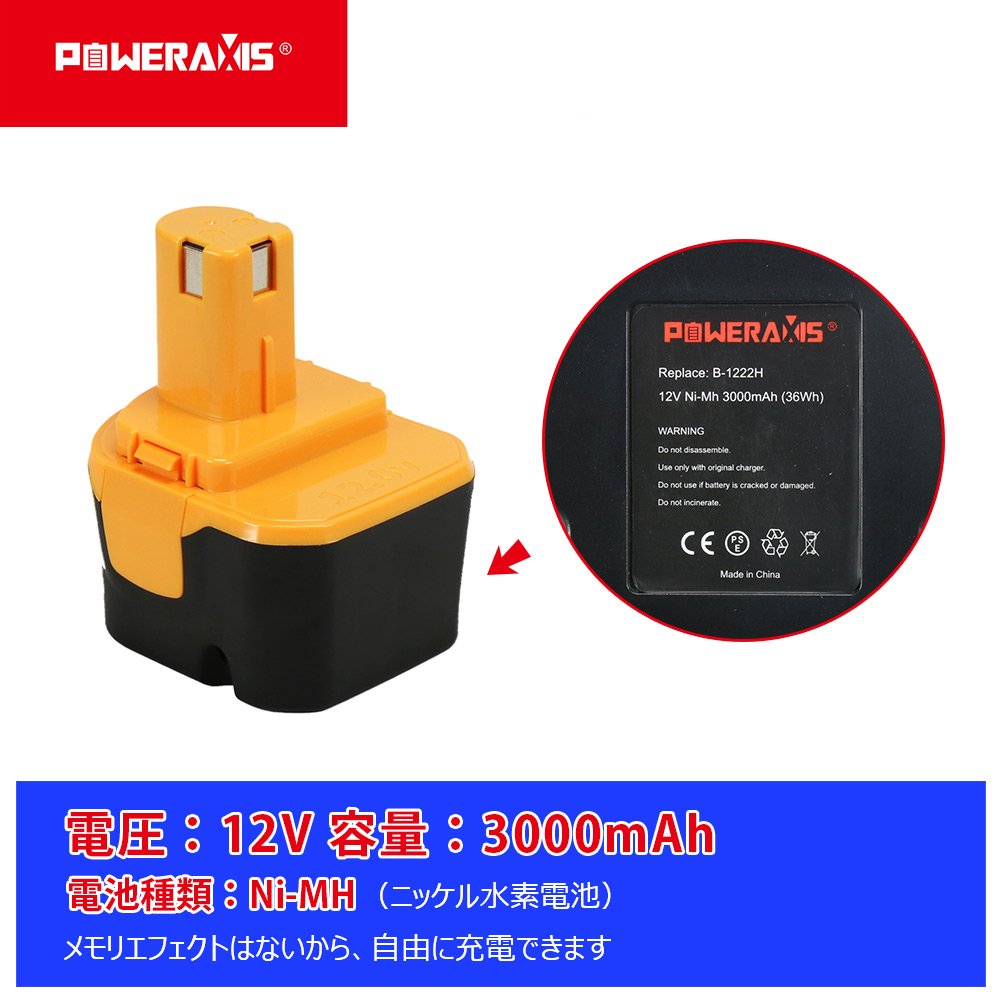 【POWERAXIS】 ryobi ryobi battery pack b - 1203 m 1 b - 1203 f 2 compatible battery 12 V battery 3000 mAh nickel hydride battery