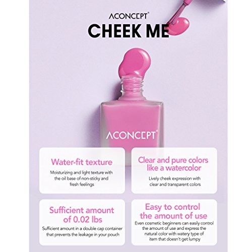 -. Binding : Misc. -. Brand : A:CONCEPT -. Feature : The oil base leaving a fresh feeling is moist but not sticky. / Transparent color like watercolor : Express transparent and clear color with no lump. / Enough capacity in a double cap container and never leaks in my pouch. / Watery texture of the product creates the look with moisture and volume on your cheeks. -. IsAdultProduct : 0 -. Label : A:CONCEPT -. Manufacturer : A:CONCEPT -. ProductGroup : Beauty -. ProductTypeName : BEAUTY -. Publisher : A:CONCEPT -. Studio : A:CONCEPT -. Title : [A:CONCEPT] Cheek Me 10g - Watercolor Cheek Liquid Blusher, Easy to Blush Makeup, Daily Color