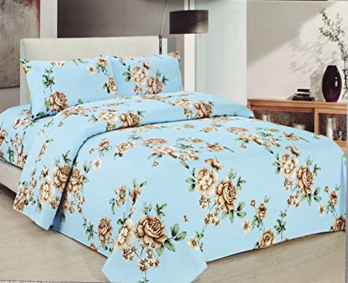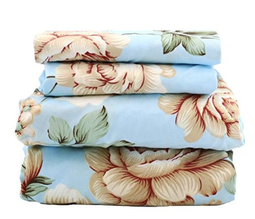 1800 Series Super Soft Egyptian Comfort 4pcs Queen Sheet Set Microfiber Floral Rose Blue