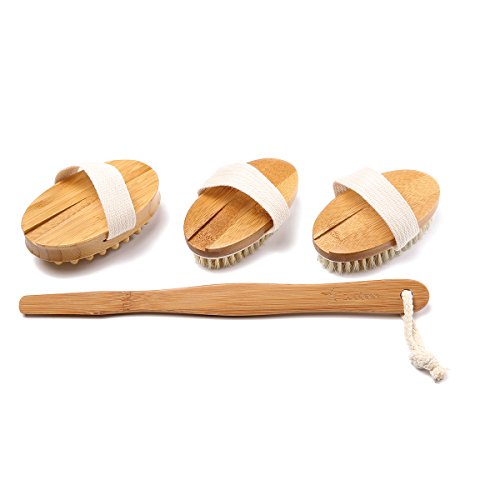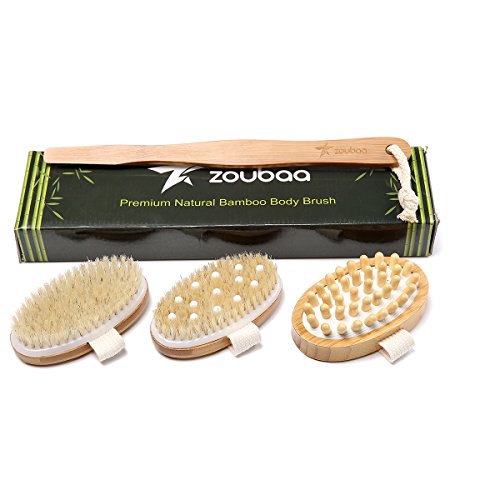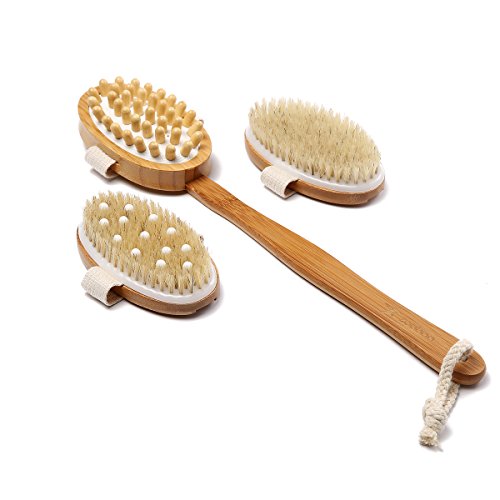 -. Feature : Effective : Our Body Back And Foot Exfoliator And Massager Are Especially Designed To Give You The Best Result . It Removes Dead Skin Cells And Dry Skin Flakes Quickly And Thoroughly ,Diminishes Clogged Pores , Acne ,Dry Skin , Scars And Discoloration, Helps Fight Strech Marks And Increases Circulation And Lymphatic Drainage.And More Effective Than Any Loofah Sponge Or Mesh Pouf. / Exfoliate :Change Your Bath Or Shower Routine Into A Full Spa Like Experience. Exfoliate Your Dead Skin With Our Skin Scrubber Brush Which Is Made Of All Natural Organic Boar Bristle The Bristle Are Perfectly Firm Without Being Too Rough On Your Skin .Regular Skin Scrubbing Will Stimulates Collagen Production , Promotes Skin Metabolism ,Improve Skin Texture And Reduces Muscle Tension Leaving You Feeling Rejuvenated and Improving your Sleep Quality . / A Massage A Day Keeps The Cellulite Away :Massage Your Body With Our Anti Cellulite Massage Brush, Our Specially Designed Nodes Will Manipulate Your Soft Tissue Just Like A Massage Therapist , While Fighting Cellulite It Will Break Down "Knots" , Reduce The Bloated Cellulite Appearance ,Stretch Muscle And Other Soft Tissues , Relieve Muscle Tension And Help Your Body Expel Toxins . / Amazing Value : In This Amazing Set You Will Get A Dry Skin Brush , An Anti Cellulite Massage Brush And An Exfoliain/Massaging Brush . All Backed Up With Our 30 Days Money Back Garantee