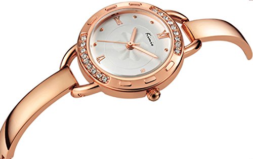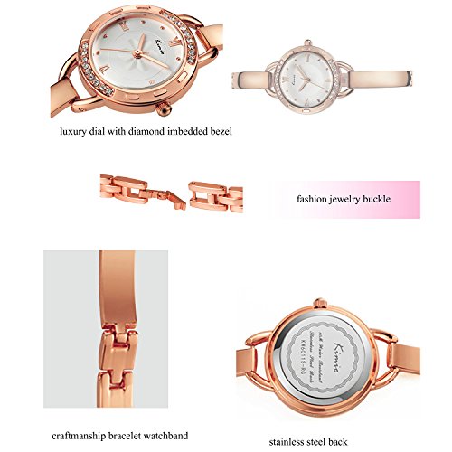 - LUXURY WATCH DESIGN: Unique white dial matches with golden tone and diamond imbedded case and soft bracelet band, this elegant watch is effortlessly luxury and shining. Simple index hour markers with 4 Roman numeral showing the time clearly