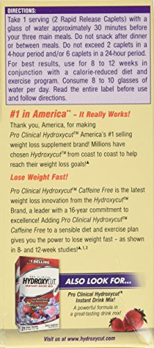 -. Binding : Health and Beauty -. Brand : Hydroxycut -. EAN : 0631656602371 -. Feature : 100% Stimulant Free Weight Loss / Lose More Weight Than Dieting Alone / Significantly Reduce BMI / 100% Caffeine Free / Contains the Same Effective Key Weight Loss Ingredients as Hydroxycut Caplets -. IsAdultProduct : 0 -. Label : HYDROXYCUT -. LegalDisclaimer : Actual product packaging and materials may contain more and different information than what is shown on our website. We recommend that you do not rely solely on the information presented and that you always read labels, warnings, and directions before using or consuming a product. Please see our full disclaimer below. -. Manufacturer : HYDROXYCUT -. MPN : 4660022 -. PackageQuantity : 1 -. PartNumber : 4660022 -. ProductGroup : Health and Beauty -. ProductTypeName : HEALTH_PERSONAL_CARE -. Publisher : HYDROXYCUT -. Size : 144ct -. Studio : HYDROXYCUT -. Title : Hydroxycut Pro Clinical- 100% Caffeine Free 72 Rapid-Release Caplets (PACK of 2) -. UPC : 631656602371