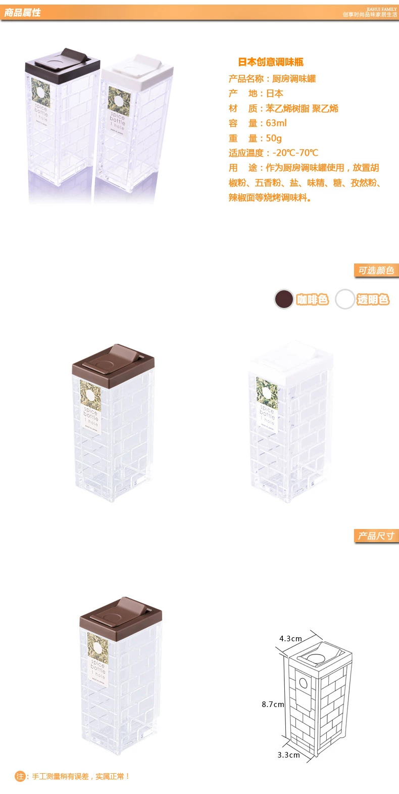 Japan's imports of plastic spice jar cruet condiment bottles transparent lid visualization pepper shakers salt and pepper bottle