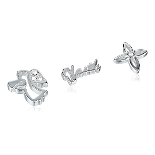 -. Feature : Stainless steel necklace featuring round crystal-bordered locket with interchangeable ribbon, angel, and "faith" charms / Interchangeable charms and lockets available from the Charmed Lockets collection. / Imported