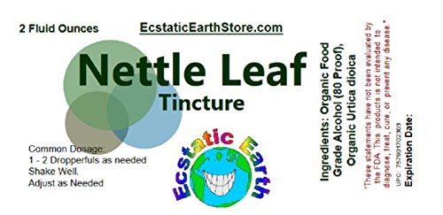 Studio : Ecstatic Earth Publisher : Ecstatic Earth Binding : Health and Beauty Product Description Our fresh Nettle Leaf Tincture is made with 100% organic (certified by Oregon Tilth) Nettle Leaf. It has been allowed to cold cure for at least 6 weeks to ensure maximum strength. About Ecstatic Earth Ecstatic Earth is a small green friendly company focused on providing our customers with the highest quality organic and/or wild crafted products available! Tinctures come in a light resistant amber colored bottle and are sealed with a tamper preventive seal. We generally ship via the U.S. Postal Service and all items are sent with tracking information (this information will be sent via e-mail by amazon.com on the date of shipment).