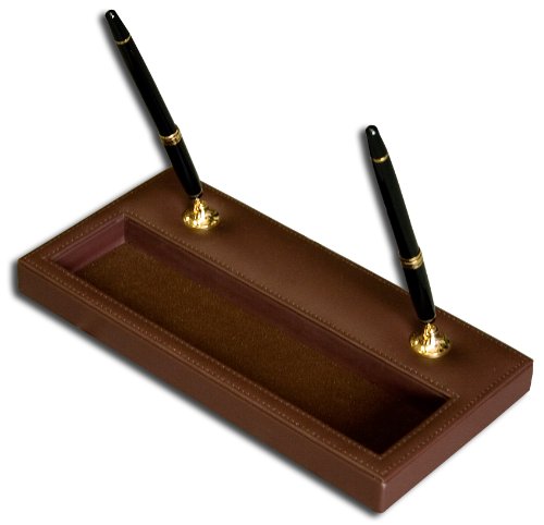 Dacasso Choclate Brown Leather Double Pen Stand with Gold Trim
