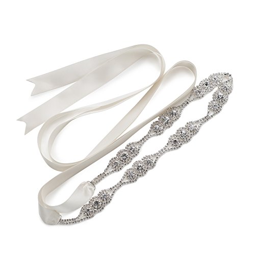 SWEETV Stylish Wedding Dress Belt Rhinestone Bridal Sash Belt Women Clothes Accessories, Silver