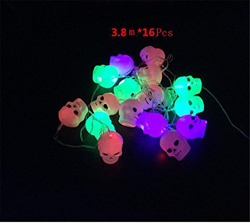 -. Title : 3.8m 16pcs Halloween Skull String Lights LEDs Holiday Decoration Colorful Lights