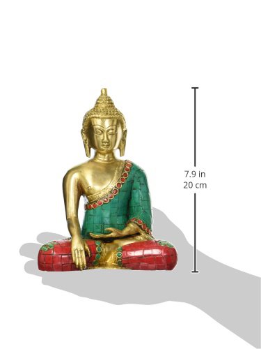 This altar buddha is made of brass with high polished finish. This medicine buddha with right hand touching the ground is believed to bring success and prosperity. This meditation buddha showpiece measures 5 x 3 x 7 inch