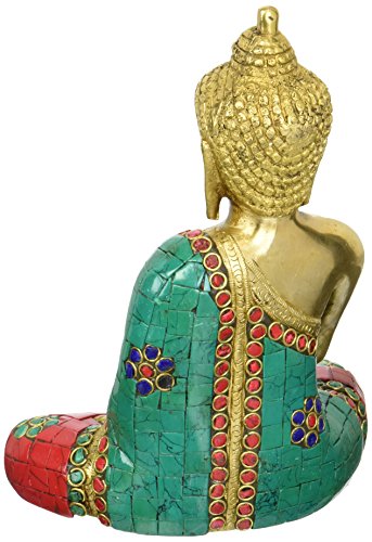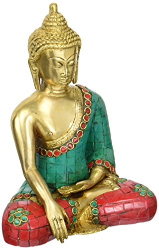 Statuestudio Indian Tibet Gautama Buddha Mini Brass Decorative Statue Figurine/Antique Shakyamuni Earth Touching Idol for Peace, Meditation & Protection/Nepal Traditional Siddhartha Sculpture-Blue Red