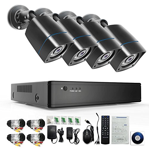 YIMODO 4-Channel 720P CCTV Security System ,1080H AHD DVR Recorder and (4)1.3MP 720P(2000TVL) Night Vision Indoor/Outdoor Weatherproof Surveillance Cameras
