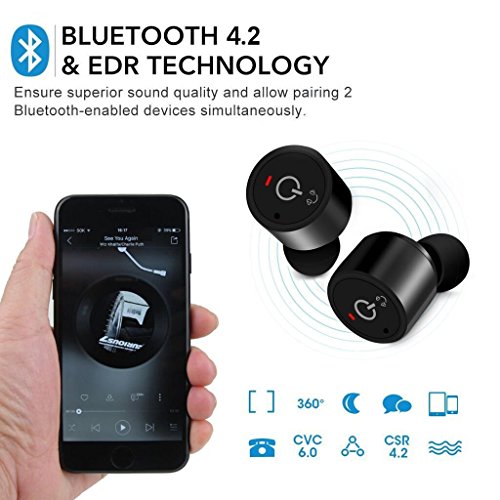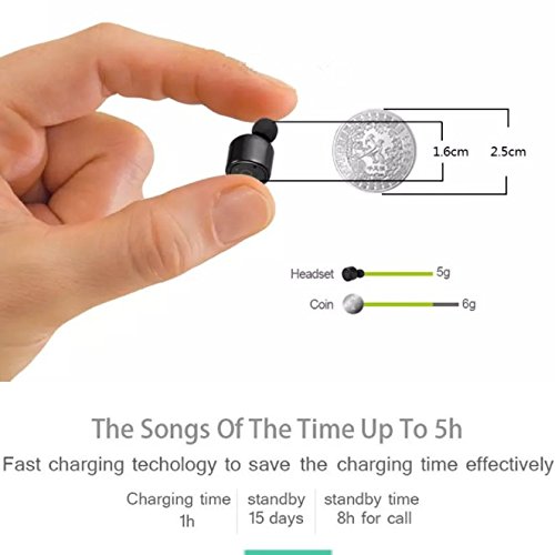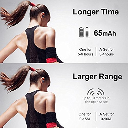 -. Feature : Soft Material to Protect Ears and Extra Comfort, Ease the Problem of Popping Out;Phone Call and Music Comfortable.Sweatproof Perfect for Sports,Watching TV,or Sleep. / With High Quality CSR-Chip,for Best Stereo Sound and Superb Bass,Also Effectively Reduce Power Consumption. / Adopt the advanced CVC6.0 active noise-cancellation. Charming Music. / With Bluetooth V4.2+CSR for best stereo sound and superb bass sound. Clear high & low volume. easily take calls.Voice Dialing.Superb microphone quality. / Long Bluetooth range make the Mini headphones extraordinary, Up to 30ft Bluetooth range in the open space, listen to music is unnecessary.You can share it with people around you.That Would Be Wonderful!!!