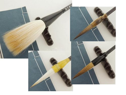 There is wolf hair, goat hair, jian hao (combination of wolf and goat). This set will accompany the users for years to come with great satisfaction. This set can hold many brushes. It has 12 hangers, one hanger can hold many (more than one) brushes. The rack is made of chicken wing wood (not plastic). The largest brush is made of ox horn. Note: Many set looks similar but quality varies, excellent quality as advertised are guaranteed for original set sold by MasterChinese. Our brushes are excellent even for the advance users.