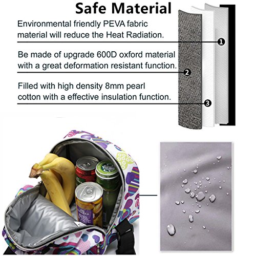 - Made with durable 600DPolyester, 5mm PE foam padding and the interior insulated PEVA lining is Eco-friendly and food safe, wipes clean easily.