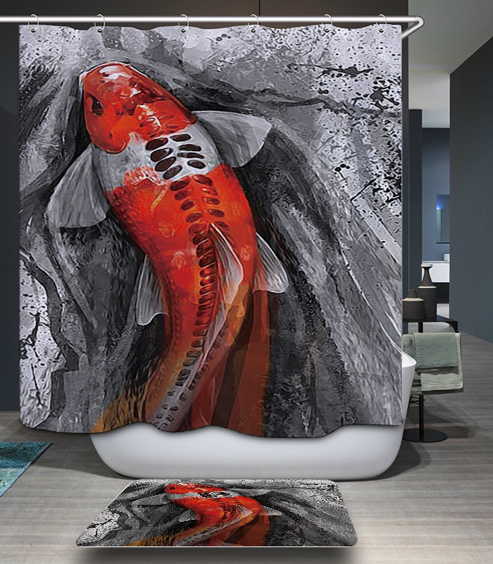 1 x Gold Fish Shower Window Curtain(with Hooks)