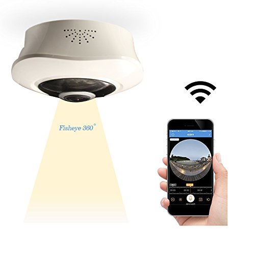 -. Feature : 【 Super Wide View Angle】 360 degree fisheye Wi-Fi IP camera without blind spots. This 360° Wi-Fi camera keeps an eye on every corner in your home/store/office, never miss anything happened in the monitoring area. This one is enough for your home security. / 【 IR Night vision】: The IR Night Vision allows you to see HD surveillance video clearly at night, you will never miss a moment, The Visibility is up to 5-10M in complete darkness. 7*24 hours a day protection, This will be more secure. / 【 Two Way Audio】 Build-in responsive and advanced microphone for a clear 2-way audio experience, through which you can hear and talk to your family quickly and easily. Be together to your lovers and care, no matter how far you go / 【 Motion Detection】You just need one cam to keep an eye on your room when you are away. When some suspicious activities occur in the selected areas, this camera know it and then alert you via APP immediately / 【Quick and Easy Setup】 WiFi Connection, super-easy installation and setup! Support Android & IOS Smart Phone View In Anytime & Anywhere with Free App