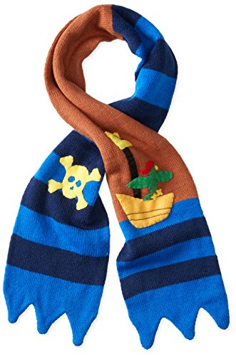 Kidorable Pirate Blue Knit Scarf for Boys With Fun Pirate Ship and Skull/Crossbones, 43x5.5 Inches