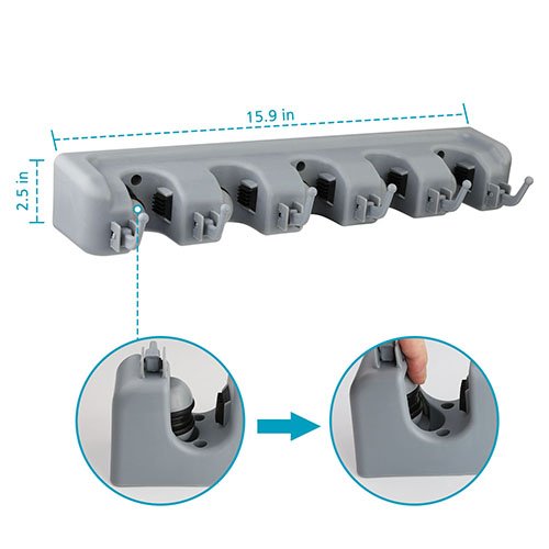 - ✔ Easy to install and use - The friction-grips clamp down securely on broom/mop handles, adjusting automatically to the handle's thickness. And release instantly when the handle is lifted.