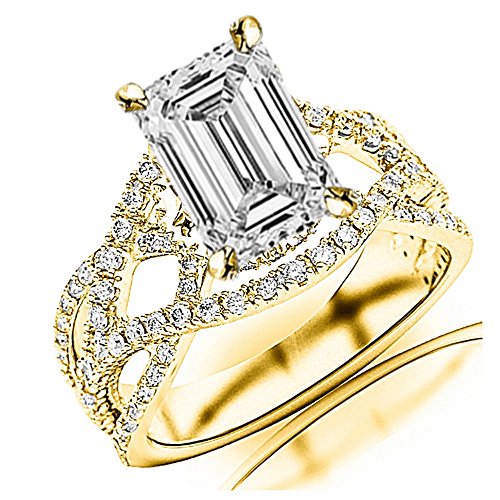 -. Title : 1.25 Ctw 14K White Gold GIA Certified Emerald Cut Eternity Love Twisting Split Shank Pave-set Round Diamond Ring, 0.5 Ct D-E VVS1-VVS2 Center
