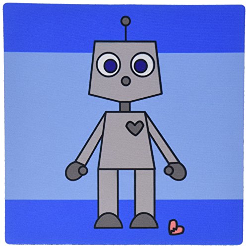 3dRose LLC 8 x 8 x 0.25 Inches Mouse Pad, Cute Robot Blue Background (mp_10842_1)