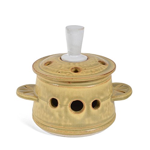 Dan Saultman Porcelain Pottery Garlic Keeper with Finial Lid, Wheat