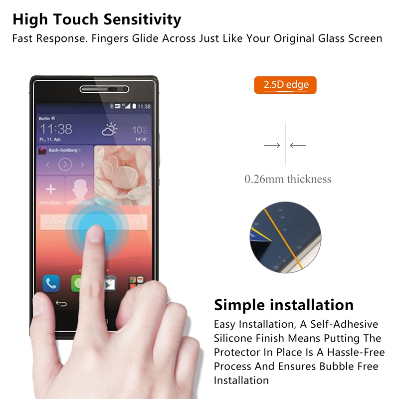 2.5D 0.26mm 9H Premium Tempered Glass Screen Protector For Huawei Ascend P7 Toughened protective film