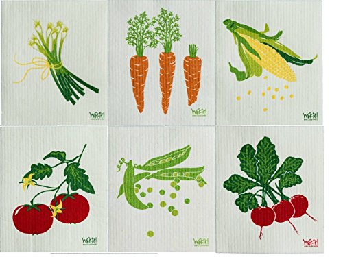 Wet-It Swedish Dishcloth Set of 6 (Peas, Radishes, Tomatoes, Corn, Carrots, Onions)