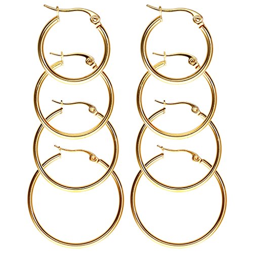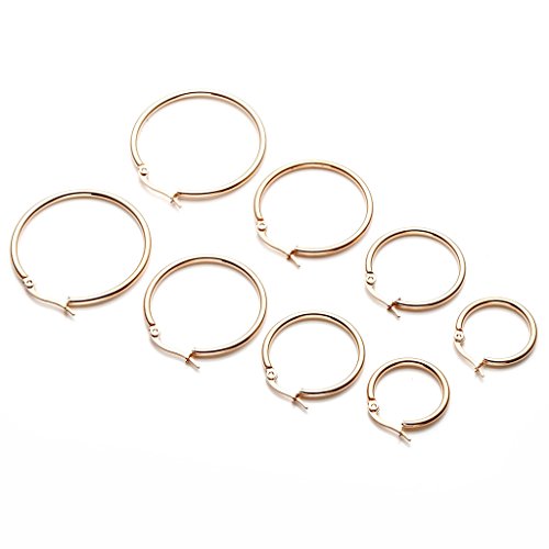 JSDDE Piercing Schmuck,8x Chirurgenstahl Damen-Creolen Huggie Kreolen Ohrstecker Ohrringe 20MM-35MM Ohrschmuck Set