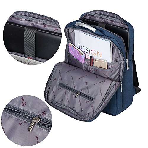-. Feature : Dimensions:14x18x7inches/35x45x18cm(LxHxW) / Main Marerial:Backpack made of high quality waterproof(water resisant)nylon fabric / Zippers and Handles:Zippers and handles made of antioxiclant(water resisant)alloy,alloy handles are more comfortable than the normal handles / Structure:A total of 8 pockets,2 main zipper pockets,1 front pocket,1 inner zipper pocket,1 15.6inches Laptop compartment pocket and 3 open inner pockets / Multipurpose:The thoughtfully designed backpack is perfect for business trips or weekend get aways or for simply heading to the office or school and home again.Regrads of gender,both man and women can use the backpack naturally