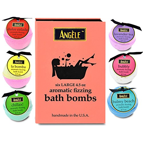 -. Title : Beautifully Packaged Bath Bombs Gift Set from Angele - 6 Assorted, XLarge, 4.5 Oz. Natural Fizzies - Infused with Coconut Oil & Shea Butter - Relax in Lush Fragrances & Moisturizing Oils - Made in USA