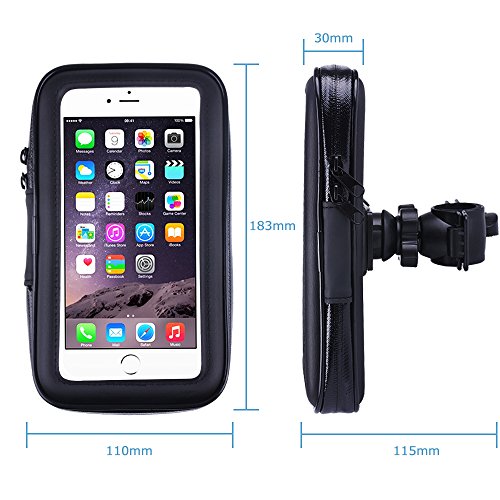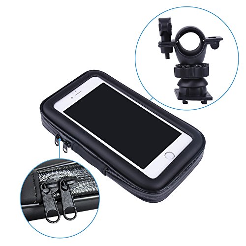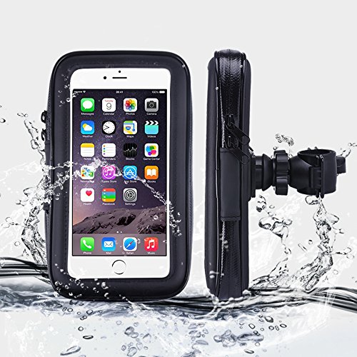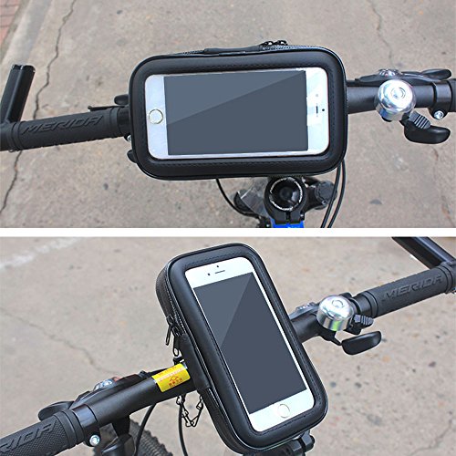 - Touch friendly transparent window. - Weatherproof phone case against water splash, snow, rain, mud, sand, dirt, and dust. - Bike mount with ball head joint to enable 360 degree rotation. - Ideal for any bicycles, motorbikes, motorcycles, scooter handlebar, stroller bars or golf carts and etc.