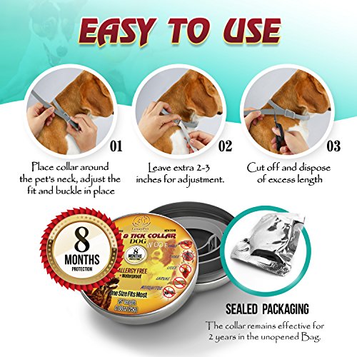 Studio : LexasPro Publisher : LexasPro Binding : Misc. Product Description RISK FREE: If you are not satisfied with the product please write to us and we will REFUND YOUR MONEY not conditional on the return of the product!.. Your satisfaction is our top priority!!! SO..WHY THINK TWICE? Color:Grey Why should you buy LexasPro Flea Tick collar for your Dog? If you tired watching your pet scratching itself and biting the locations where it was infected by Flea and Tick, you need to act promptly. Your dog can pick up fleas and ticks from other pets, from wildlife and from tall grasses he loves to play and lay on... After a dog becomes a tick or flea host, they can suffer some health risks, ranging from minor irritations to potentially deadly diseases. If you'd prefer to avoid these headaches all together, take some preventative measures before it happens. With our Flea and Tick collar your Dog gets immediate and long-term health protection The collar not only kills adult fleas, ticks, but also larvae and it's eggs and also repels mosquitoes. Follow the manufacturer's guidelines for use and application to ensure your tick and flea treatment is swift and absolute! How often replace the collar: Under normal conditions, replace collar every 8 months. Under severe infestations, replace collar more often. Important: If signs of sensitivity occur, remove the collar and bathe your dog immediately. Caution: Don't allow dog to chew or eat the collar. Water: Wetting the collar will not impair the collar's effectiveness. Note: Do not use detergents or cleaners that contain alcohol, gasoline or acetone! ORDER NOW Get this Incredible Flea Tick Collar Delivered to you in just 2 Days 0