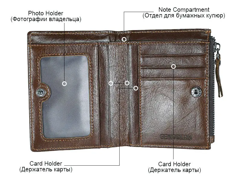 Interior:Photo Holder,Zipper Poucht,Note Compartment,Card Holder