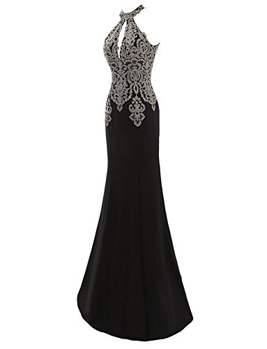 A high halter neckline, cut away shoulders and seductive keyhole opening add to the allure of this high neck long formal dress.