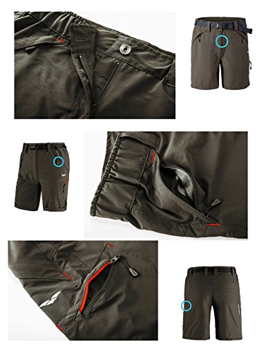 -. Feature : 2-way stretch, lightweight comfortable material featuring water-resistant treatment repels light showers, dewy vegetation, and spills, breathable / Partial elastic at waist with integrated removable belt, MIER casual shorts with adjustable waist allow you to get the fit you want / 2 zip-closed security pockets are deep enough to be useful, 1 cargo pocket; Mid rise; relaxed fit through hips and thighs / Machine wash cold, tumble dry low. Graphite grey/ Rock grey/ Brown 3 colors available, come with a belt / Pay Attention: the hip size in SIZE CHART (the last image) should not be smaller than your body hip size. Please check size chart carefully before order. Any questions, pls feel free to contact us