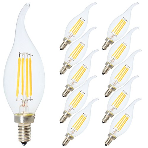 10 Pack E12 Candelabra Base 4W Dimmable COB LED Filament Flame Tip Vintage Candle Light Bulb Warm White 2700K For Home,Kitchen,Dining Room,Bedroom,Living Room,40W Incandescent Replacement