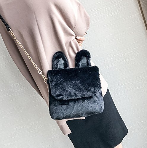 FEATURES - Cute rubbit ear design with luxury faux fur and pu leather, the chain-strap can be detached, you can handle/crossbody/shoulder for three ways to carry the bag.