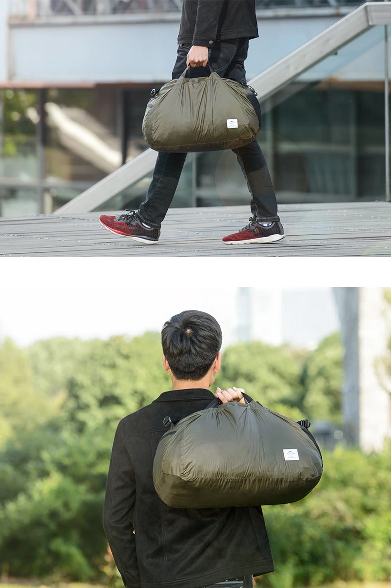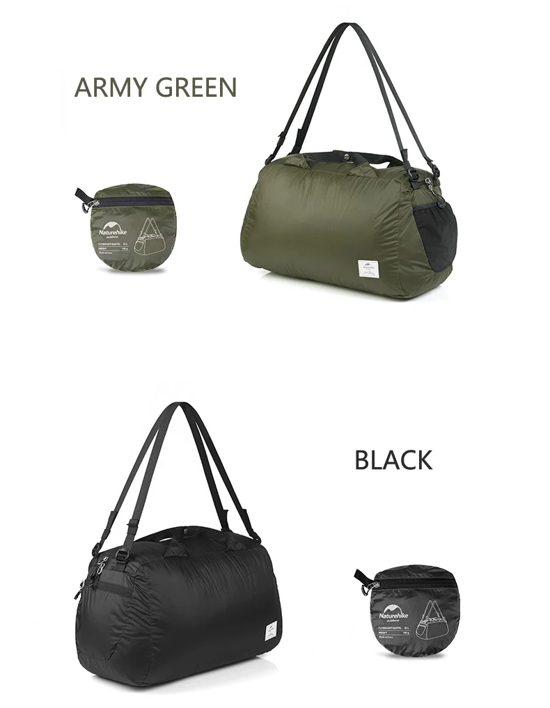 Naturehike 32L waterproof 20D Silicone camping bag Color: army green,black Size: 50 x 26 x 24cm Weight: 145g Capacity: 32L Material: 20D Coated Silicon Lattice Cloth Waterproof: yes Function: Travel,hiking,camping storage
