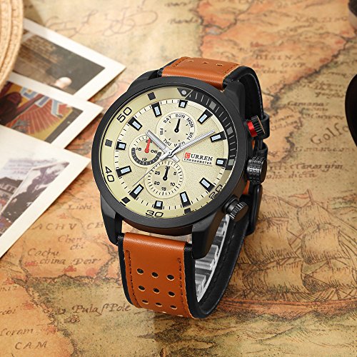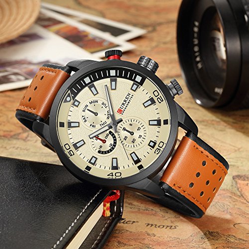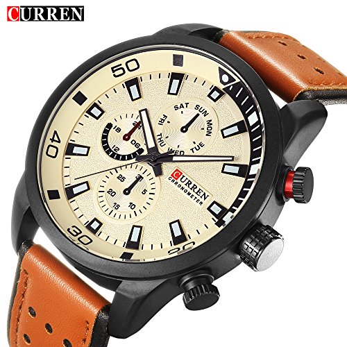 -. Title : CURREN Original Brand Men's Sports Waterproof Leather Strap Wrist Watch 8250 Brown Beige